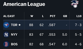 As of late September 2023, the Toronto Blue Jays are positioned among the top teams in the American League East. They currently hold a record of 86 wins and 72 losses, placing them firmly in the playoff race. Key competitors such as the New York Yankees and Tampa Bay Rays have also had formidable seasons, intensifying the battle for postseason contention.