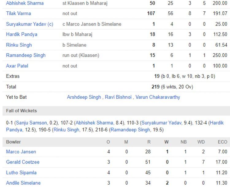 India National Cricket Team vs South Africa National Cricket Team: Match Scorecard
