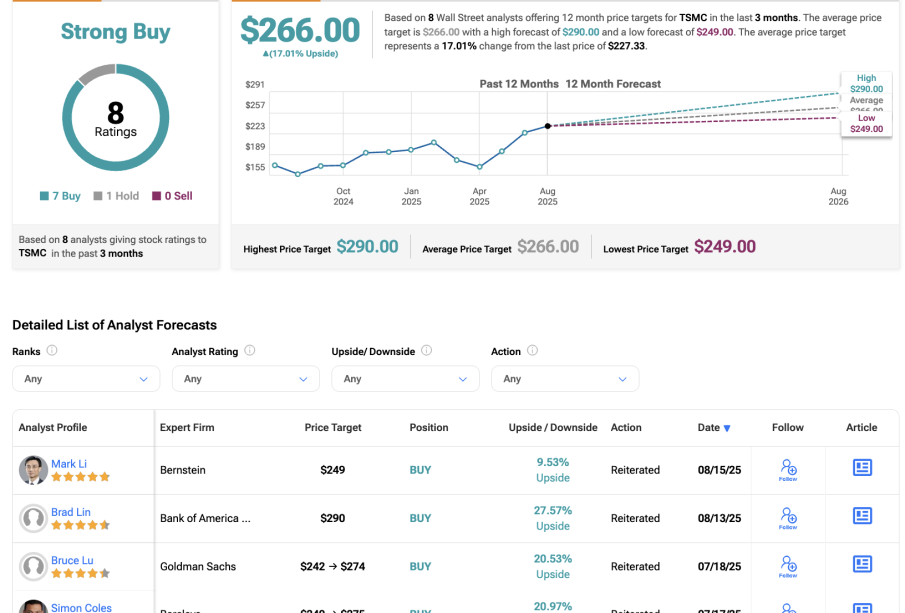 In recent earnings reports, TSMC reported revenue growth of approximately 30% year-over-year, attributed to high demand for semiconductor products driven by AI and mobile technology applications. However, analysts caution that the stock may face headwinds from potential trade restrictions and competition from rival manufacturers, particularly from China.